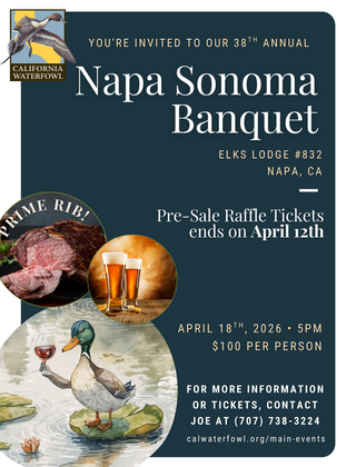 Join us for our 38th annual Napa Sonoma Banquet at the Elks Lodge in Napa, CA. We pride ourselves on this sold out event and look forward to spending it with you! An amazing live & silent auction, plus great food &good people. Get your tickets now before it's too late!