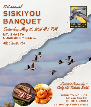 Come one and all to our 21st annual Siskiyou Banquet at the Mt. Shasta Community Building. Enjoy all you can eat tri-tip and shrimp catered by Keith's Meat. This event has limited seating and Pre-Sale offers expire April 18th, so get yours soon!