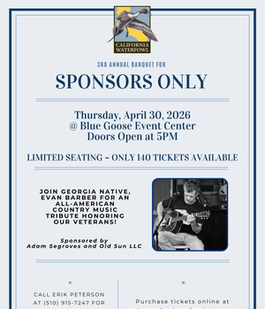 Join us and Country artist Evan Barber for an unforgettable night at our Sponsors Only banquet in Loomis, CA. This event has limited seating, so get your tickets fast! Annual Sponsors are Free, so don't miss this event!