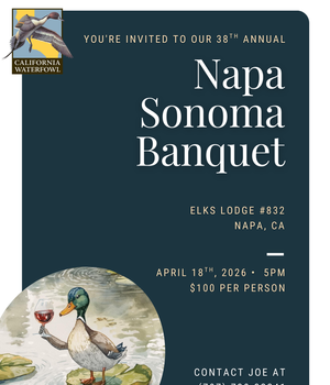 Join us for our 38th annual Napa Sonoma Banquet at the Elks Lodge in Napa, CA. We pride ourselves on this sold out event and look forward to spending it with you! An amazing live & silent auction, plus great food &good people. Get your tickets now before it's too late!