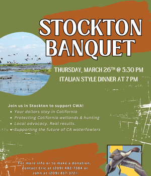 Join CWA and our Hollister Chapter for our 23rd annual Hollister Banquet at the Elks Lodge! FREE Raffle for Youth, Veteran & Ladies. Enjoy a delicious Prime Rib dinner while talking with fellow supporters. Don't Miss This Event!