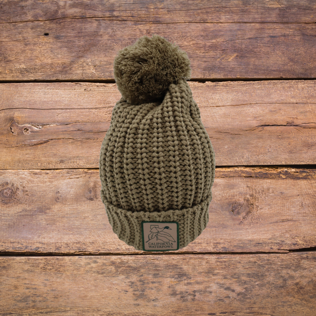 Slouchy knit beanie with CWA patch in clay