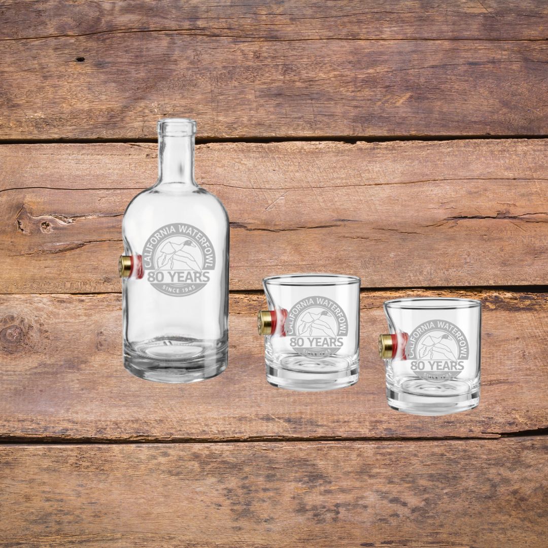 This custom decanter set has a shotgun shell enbedded in each piece. This is an awesome addition to your home or duck club!